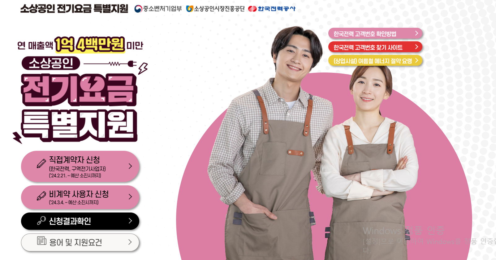 위의 신청 자격에 해당되신다면 지금 바로 소상공인 전기요금 특별지원 신청하시길 바랍니다.