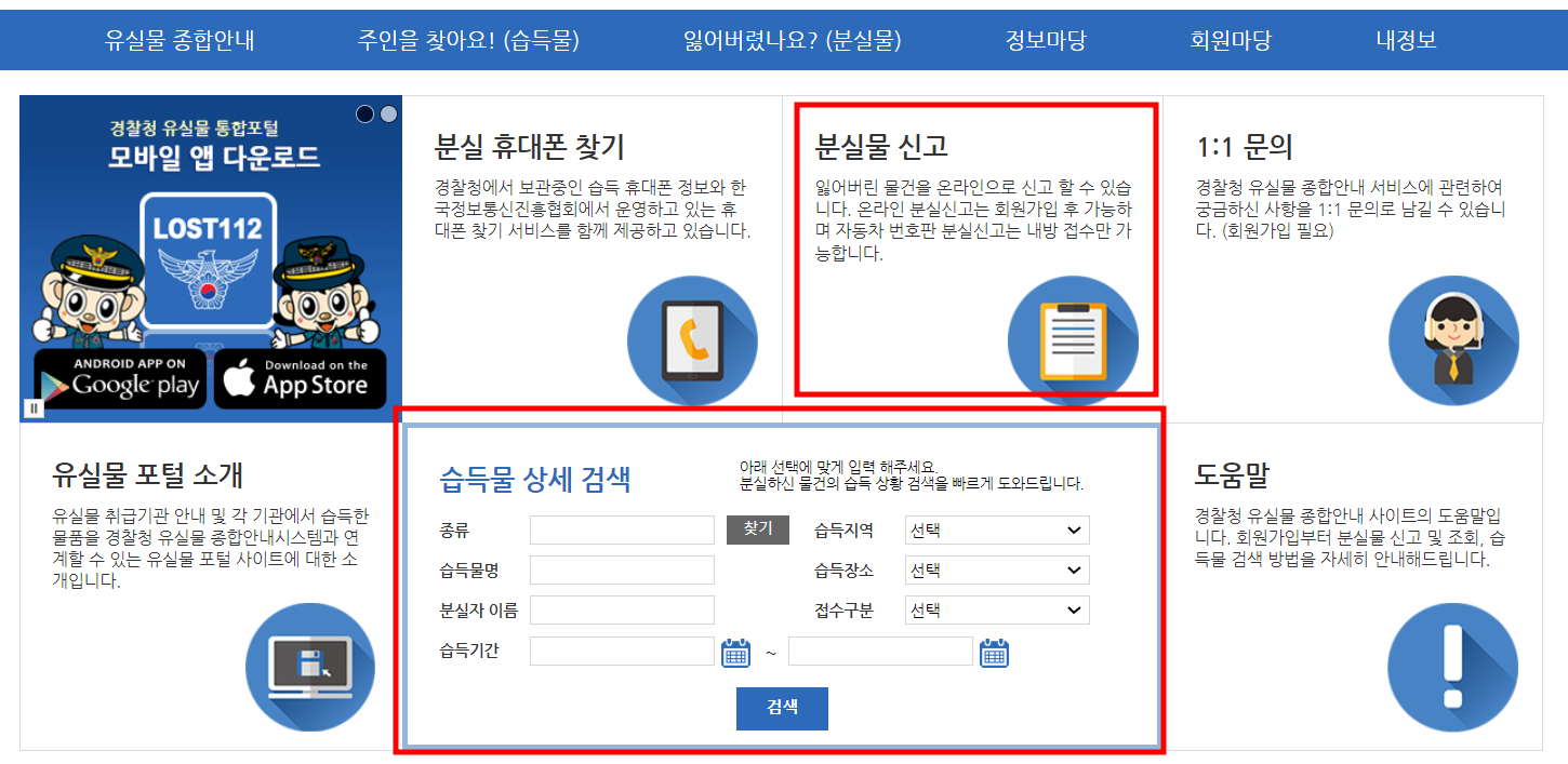 운전면허증 외에 휴대폰 등 다른 분실물도 이 곳에서 분실신고를 할 수 있습니다.