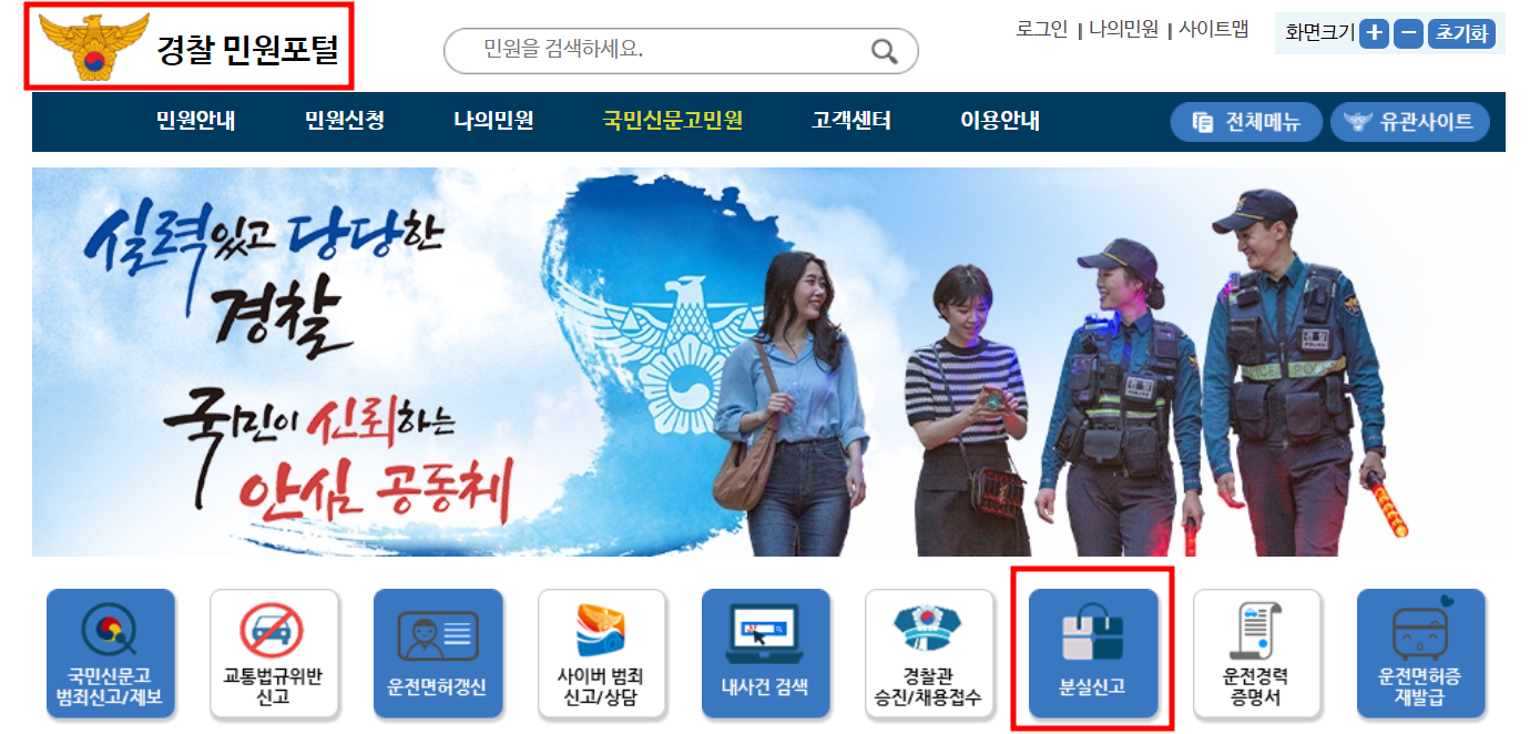 바로 경찰민원포털에 접속하여 분실신고를 하면 됩니다.