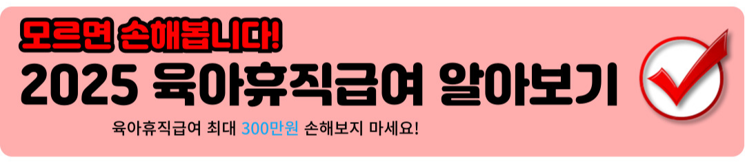 아래에 모르면 손해보는 2025 육아휴직 급여 정보 바로가기를 누르셔서 빠르게 정보 확인해보세요.