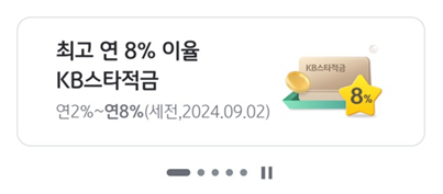 2. 금융 상품을 누르면 바로 위에 8% 이율 KB스타적금이라는 배너를 누릅니다.